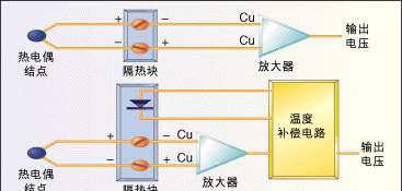 两种不同导体或半导体的组合称为热电偶。热电势EAB(T,T0)是由接触电势和温差电势合成的。接触电势是指两种不同的导体或半导体在接触处产生的电势,此电势与两种导体或半导体的性质及在接触点的温度有关。当有两种不同的导体和半导体A和B组成一个回路,其相互连接时,只要两结点处的温度不同,一端温度为T,称为工作端,另一端温度为TO,称为自由端,则回路中就有电流产生,即回路中存在的电动势称为热电动势。这种由于温度不同而产生电动势的现象称为塞贝克效应。