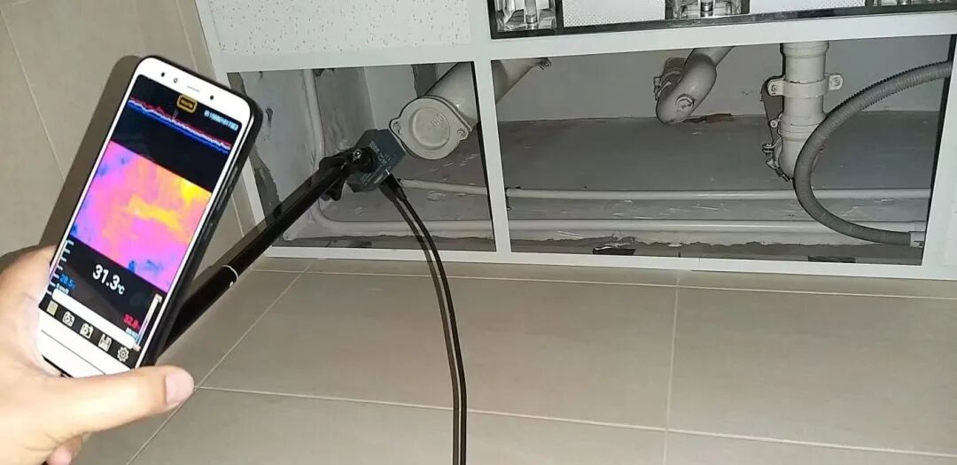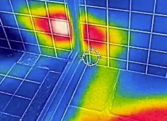 不论采用什么管材,管道与楼板属于膨胀系数等特性互不相同的两种材料。在建筑投入使用后,厨房、卫生间楼板要连续不断地承受荷载而变形,同时管道内的介质温度长期处于不断变化中,引起管道不断的热胀冷缩,一段时间后,管道与楼板间产生裂缝,引起渗漏水。卫生间的漏水原因明确后,红外热成像仪主要对隐藏在瓷砖底下的渗水和埋设墙体的水管渗漏进行检查,利用温差成