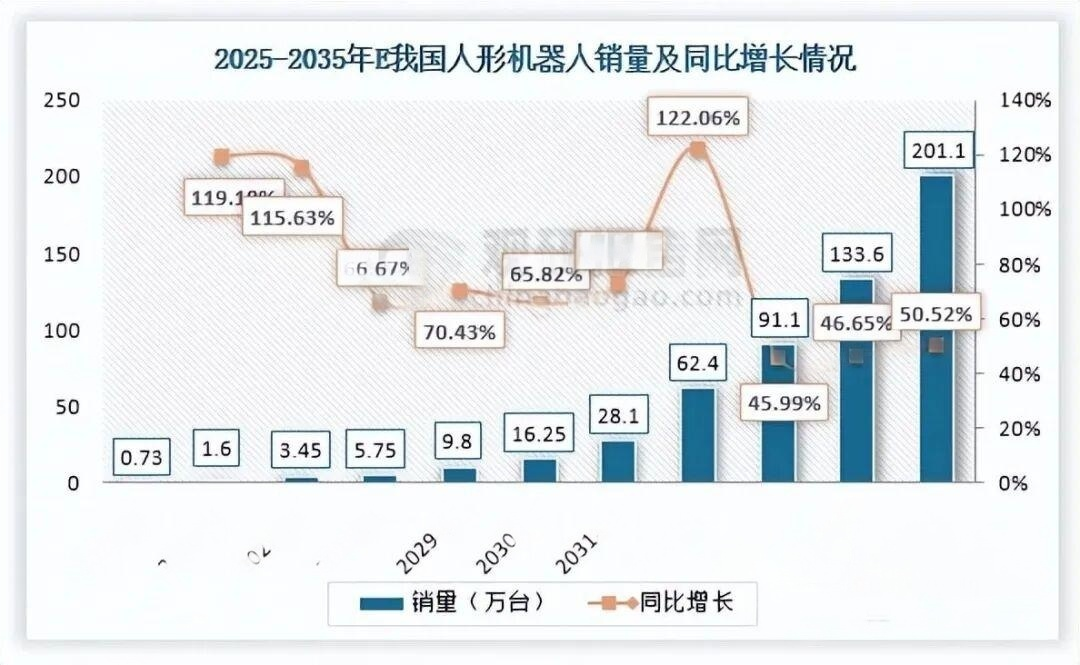 未来,传感器应用领域将进一步向人形机器人等新兴赛道加速渗透,进一步打开行业增长空间。传感器作为人形机器人的核心感知部件,有望伴随其大规模量产与规模化应用而受益。数据显示,2035年我国人形机器人销量有望突破200万台,2025年-2035年年均复合增长率达75.39%,将为传感器行业带来长期的需求增量。